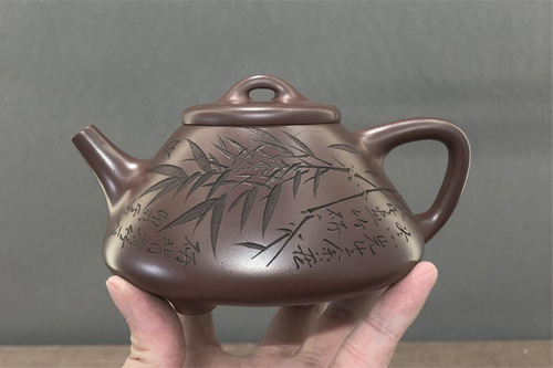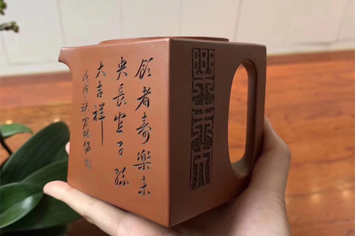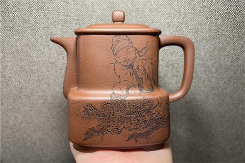 夏布衣的作品,无论是从设计、选材还是制作上,都透露出一种匠心独运的精神。他的经典器型如仿古壶、知足壶等,无不展现出他深厚的艺术功底和独特的审美眼光。其中,仿古壶采用文革紫泥手工制作,泥质细腻如绸,色泽温润而富有层次,壶身双面施以精湛陶刻技艺,每一刀都见匠心独运,细腻入微,气势磅礴。而知足壶则采用雪花绿泥手工精制,形态稳重而高雅,线条如行云流水,壶柄、壶嘴及壶钮精妙地化为竹节之姿,不仅展现了清雅脱俗的气质,更透露出一种深远的宁静与淡泊情怀。